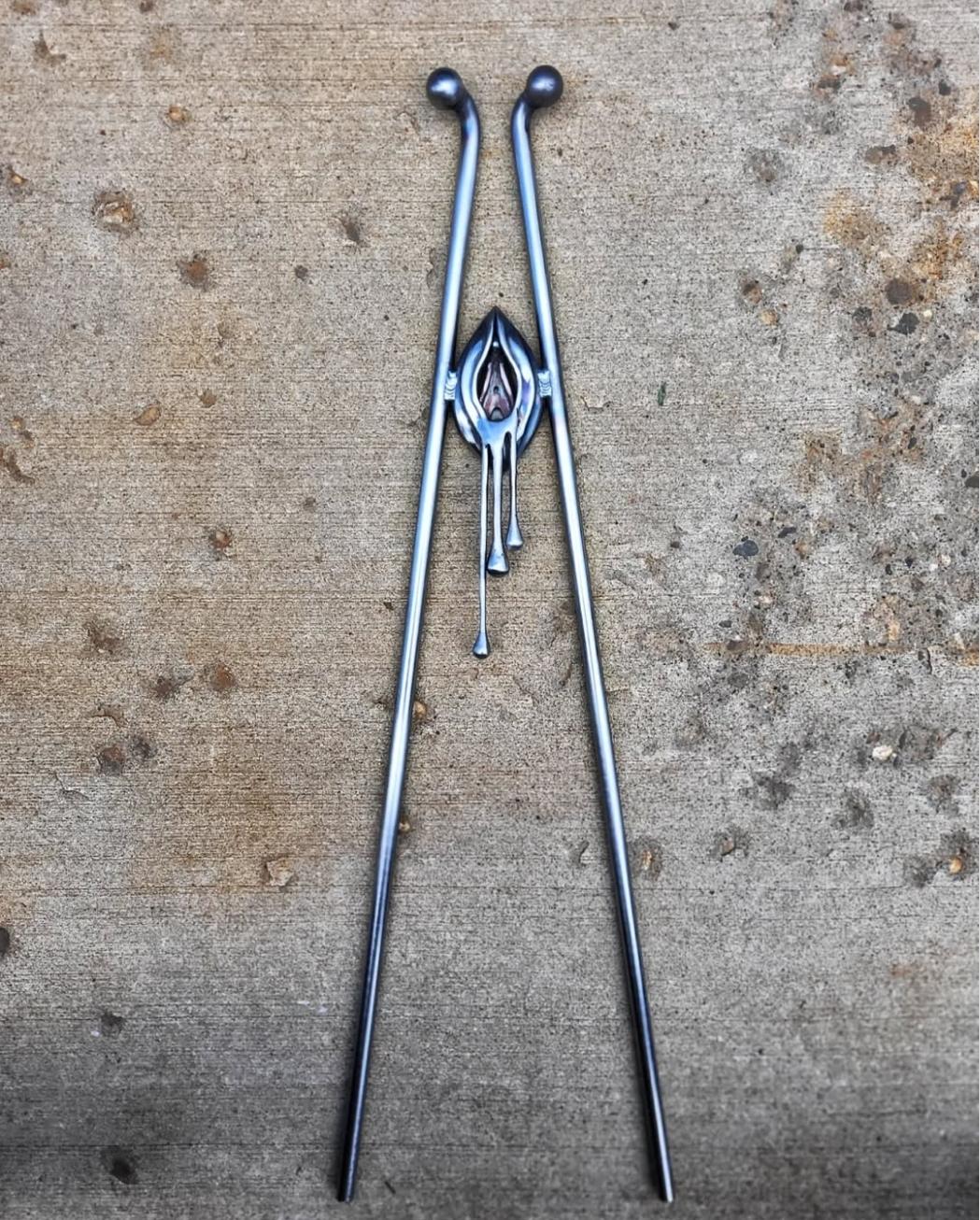 What started as a side hustle fueled by borrowed tools and weekend hours has evolved into a distinct artistic identity. Her work sits at a unique intersection: it’s "Sailor Jerry" meets heavy metal. Think bold, clean lines, the kind you’d see in a classic tattoo, forged into steel.